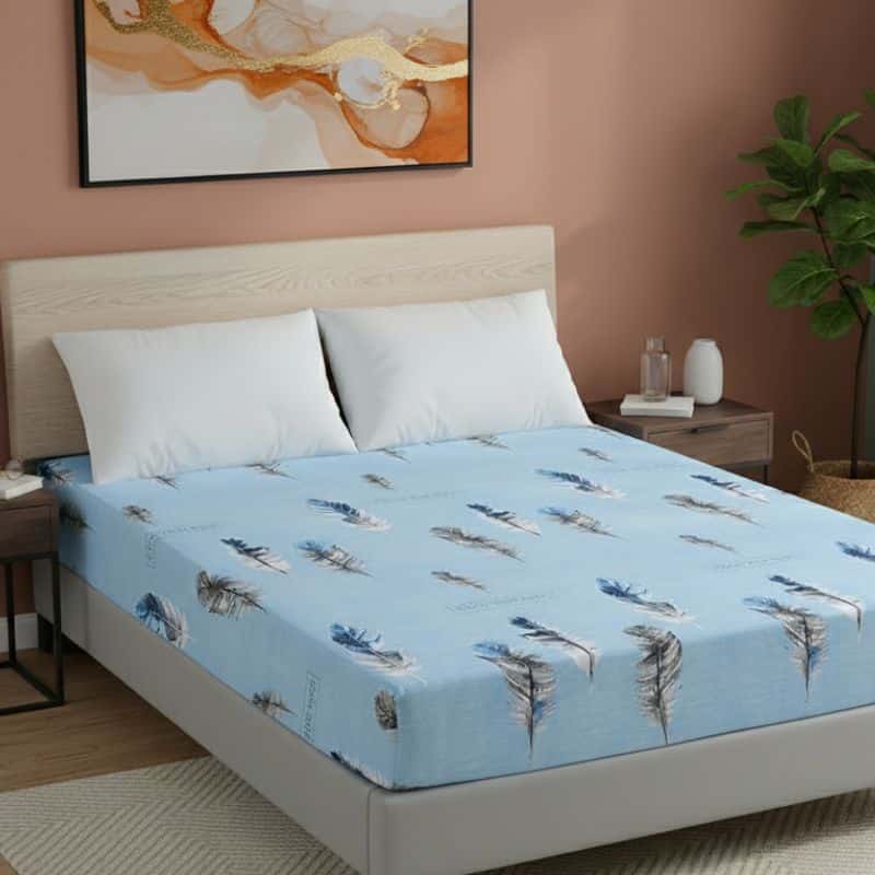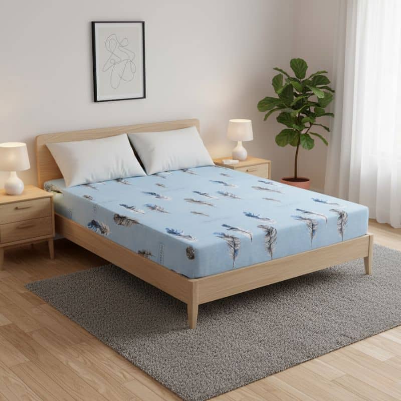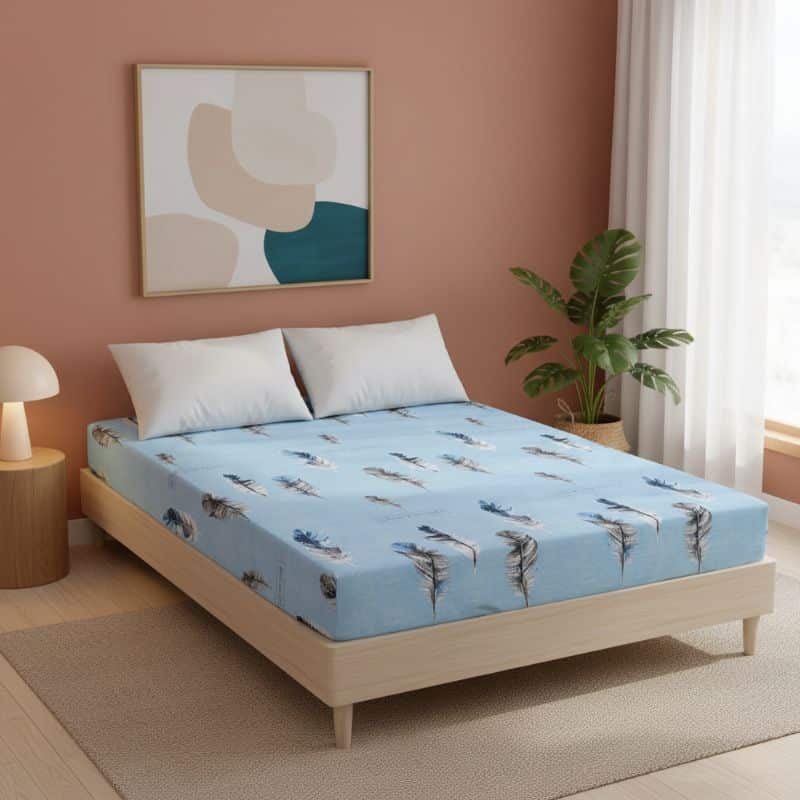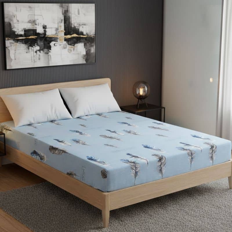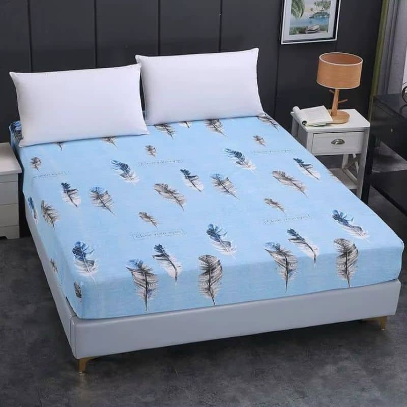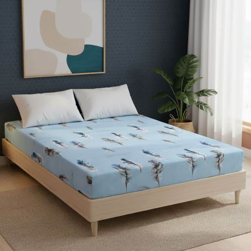Le Drap-housse À Motif Plume Céleste enrichit votre chambre par son design élégant et apaisant. Les tons subtils de bleu, blanc et noir, rehaussés par le motif en plumes, créent une atmosphère sereine. Ce motif est parfait pour ajouter une touche de raffinement sans surcharge visuelle. Un choix idéal pour ceux qui recherchent un équilibre parfait entre style et confort. Changez l’énergie de votre chambre grâce à ce linge de lit captivant.